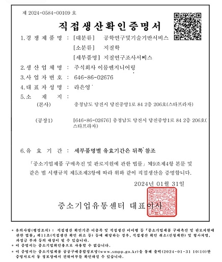 직접생산확인증명서(지질학) > 특허 및 업등록현황